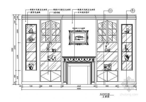 (1)与装饰平面图相配合对照,明确立面图所表示的投影面平面位置及其造型轮廓、形状尺寸和功能特点。