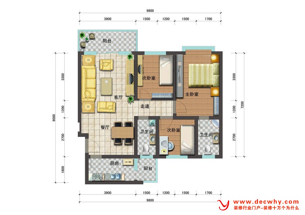 d、地面布置图:规划室内各个房间的地面布置方案;