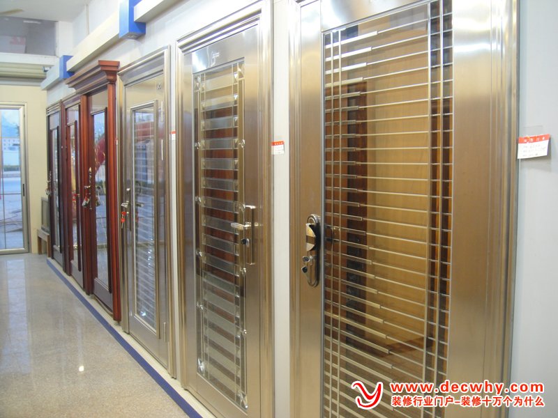 (1)大家在选购入户门时除了考虑安全因素的防盗门外,还要从美观、使用角度习虑,因此大多数家庭选用了具有装饰效果的结实、厚重的全实木门。