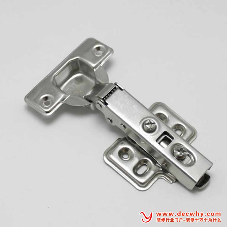 (5)挑选铰链除了目测、手感铰链表面平整顺滑外,大家还应注意铰链弹簧的复位性能。簧片的好坏决定了门板的开启角度,品质好的簧片可以使开启角度超过90度。