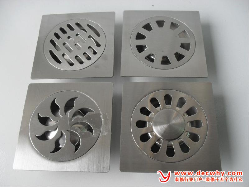 市场上的地漏从材质上分为不锈钢地漏、PVC地漏和全铜地漏三种。由于地漏埋在地面以下,且要求密封好,所以不能经常更换,因此选择适当的材质非常重要。其中全铜地漏因其优秀的性能开始占有越来越大的份额。不锈钢地漏因为外观漂亮,前几年颇为流行,但它造价高、镀层薄,因此过不了几年仍逃脱不了生锈的命运;而PVC地漏价格便宜,防臭效果也不错,但是材质过脆,易老化,尤其北方的冬天气温低,用不了太长时间就需更换,因此市场也不看好。