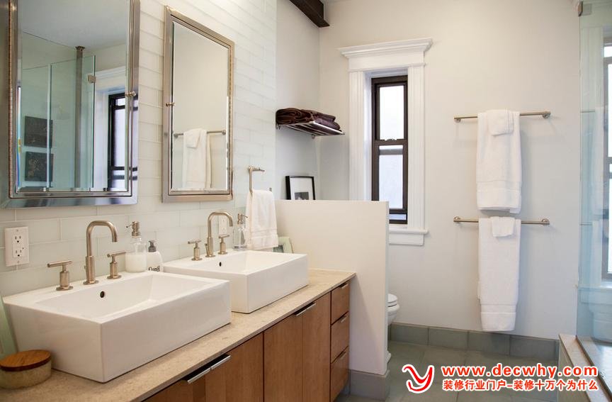 浴室一般空间比较小,在考虑美观的同时,其他补助功能也要考虑在内,带点收纳功能的镜子能弥补浴室空间的不足,小镜子大利用。