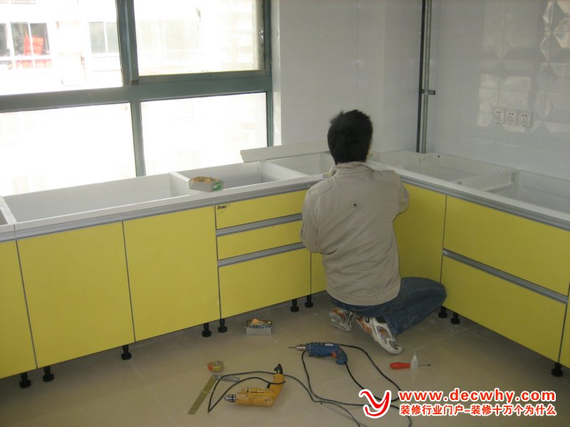 检查抽屉、门扇等活动五金部件,看开关是否灵活,有无噪声,有无防撞或自闭功能。专业厂家设计制作的橱柜,柜体之间应有过山丝连接,整体牢固性好;地柜底部装有水平调整脚,可以调整柜体的水平度,又有防水功能;设有整体移动式踢脚板,方便清洁橱柜底部。由于抽屉是橱柜最常用的部分之一,滑轨的好坏直接影响到橱柜的寿命,所以在挑选橱柜时,要查看抽屉推进拉出是否顺畅或左右松动状况、抽屉缝隙是否均匀。