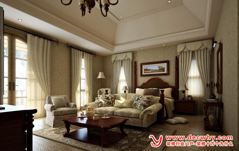 对于小空间而言,尽量避免喧宾夺主的大型光源,一盏造型简约有别具风格的吊灯足以烘托氛围,如果觉的照明不够们可以适当在吊顶中布置射灯或隐藏式的照明补充。
