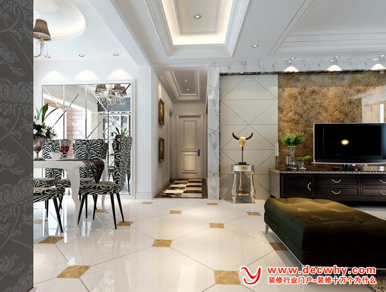 过道的装修可以从三个方面着手,即墙面、顶面和地面。过道的墙面可以挂上风格突出的装饰画或挂饰,甚至是挖出凹形装饰框,放置不同的饰品,然后再加强局部照明,这样就能很好地克服墙面呆板、单调的感觉。过道的顶面,一般会选用浅色的壁纸或涂料来装饰,以缓解低空问的压抑感。同时,运用灯池或灯槽的方式进行照明设计,让顶面能充满变化,同时过道的光线也会更为融合、均匀。过道的地面材料最好能符合耐磨和经常清洁的特点,多选用地砖、大理石、木地板,还有地毯也是不错的选择。