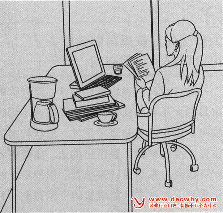 工作台、高低可调的椅子、轻柔的背景音乐,甚至伸手可及的咖啡壶,这些